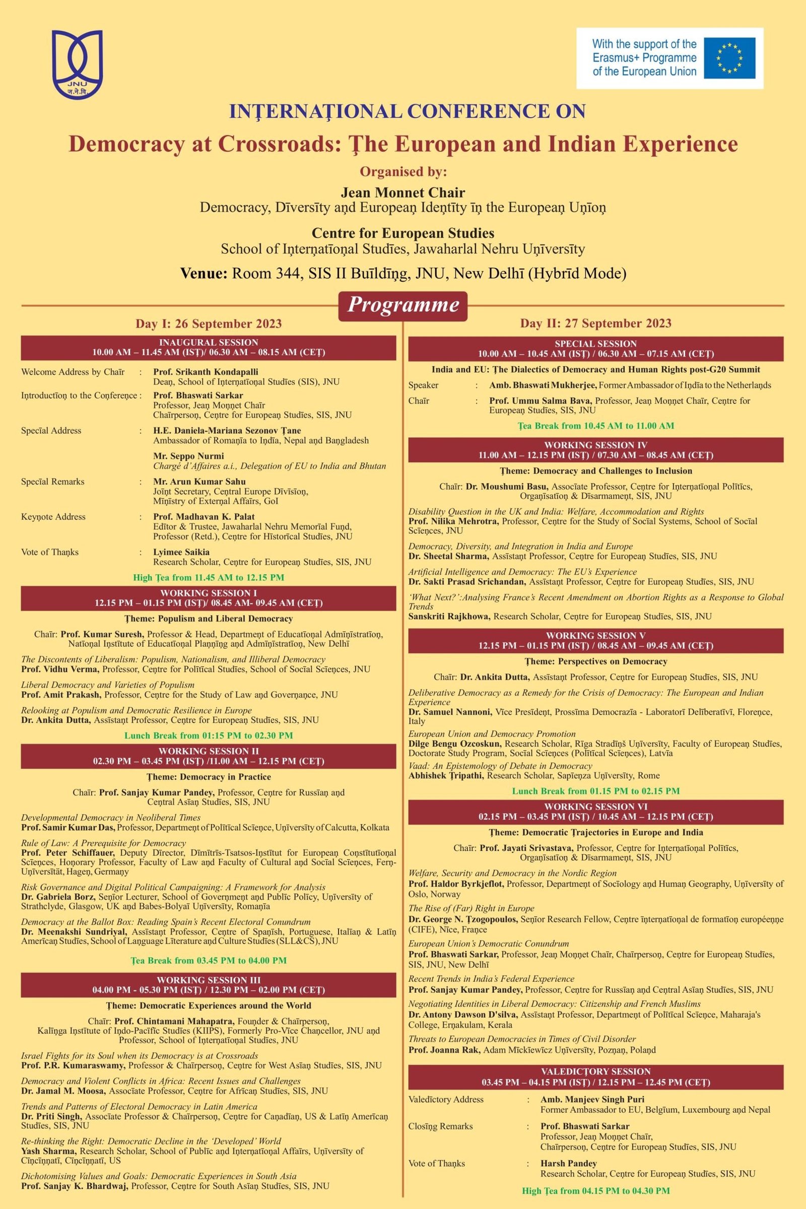 International Conference – “Democracy at Crossroads: The European and Indian Experience” 26 & 27 September 2023